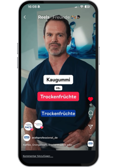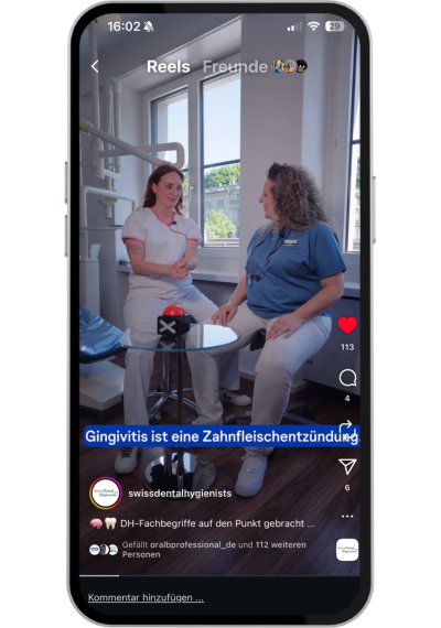 Um den Berufsstand der Dentalhygieniker:innen langfristig zu stärken und gleichzeitig Aufklärung über Zahn- und Mundgesundheit zu leisten, galt es, Content zu entwickeln, der informativ und unterhaltsam zugleich ist. Die Inhalte stellen die Expertise der Fachpersonen in den Mittelpunkt, bleiben dabei jedoch leicht verständlich und zugänglich – nicht zu kompliziert, aber so differenziert wie die Realität.