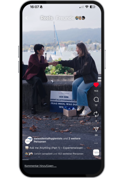 Dentalhygieniker:innen spielen in der Schweiz eine zentrale Rolle für die Prävention und Förderung der Mundgesundheit. Dennoch wird ihre Expertise in der Öffentlichkeit häufig unterschätzt, während gleichzeitig Informationslücken rund um Zahn- und Mundgesundheit bestehen. Mit informativem Video-Content rücken wir das Fachwissen der Dentalhygieniker:innen in den Fokus, leisten Aufklärungsarbeit und stärken die Wahrnehmung ihres Berufsstandes.