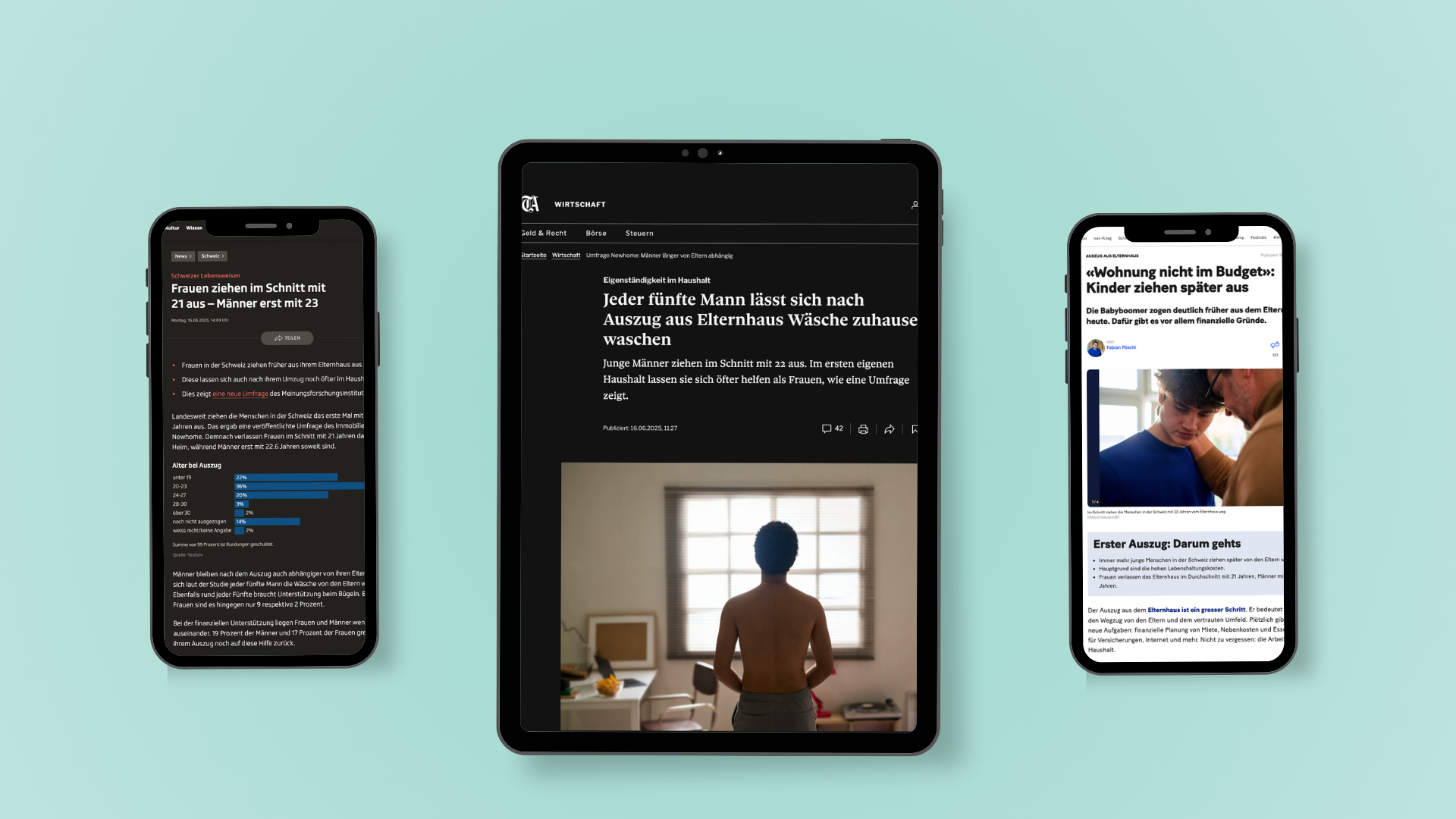 In der bevölkerungsrepräsentativen Umfrage vom Juni 2025 widmete sich newhome dem Thema „Ausziehen von Zuhause“. Erfragt wurde, wann Menschen in der Schweiz typischerweise das Elternhaus verlassen, welche Beweggründe dahinterstehen und in welchem Umfang sie auch nach dem Auszug noch elterliche Unterstützung in Anspruch nehmen.
